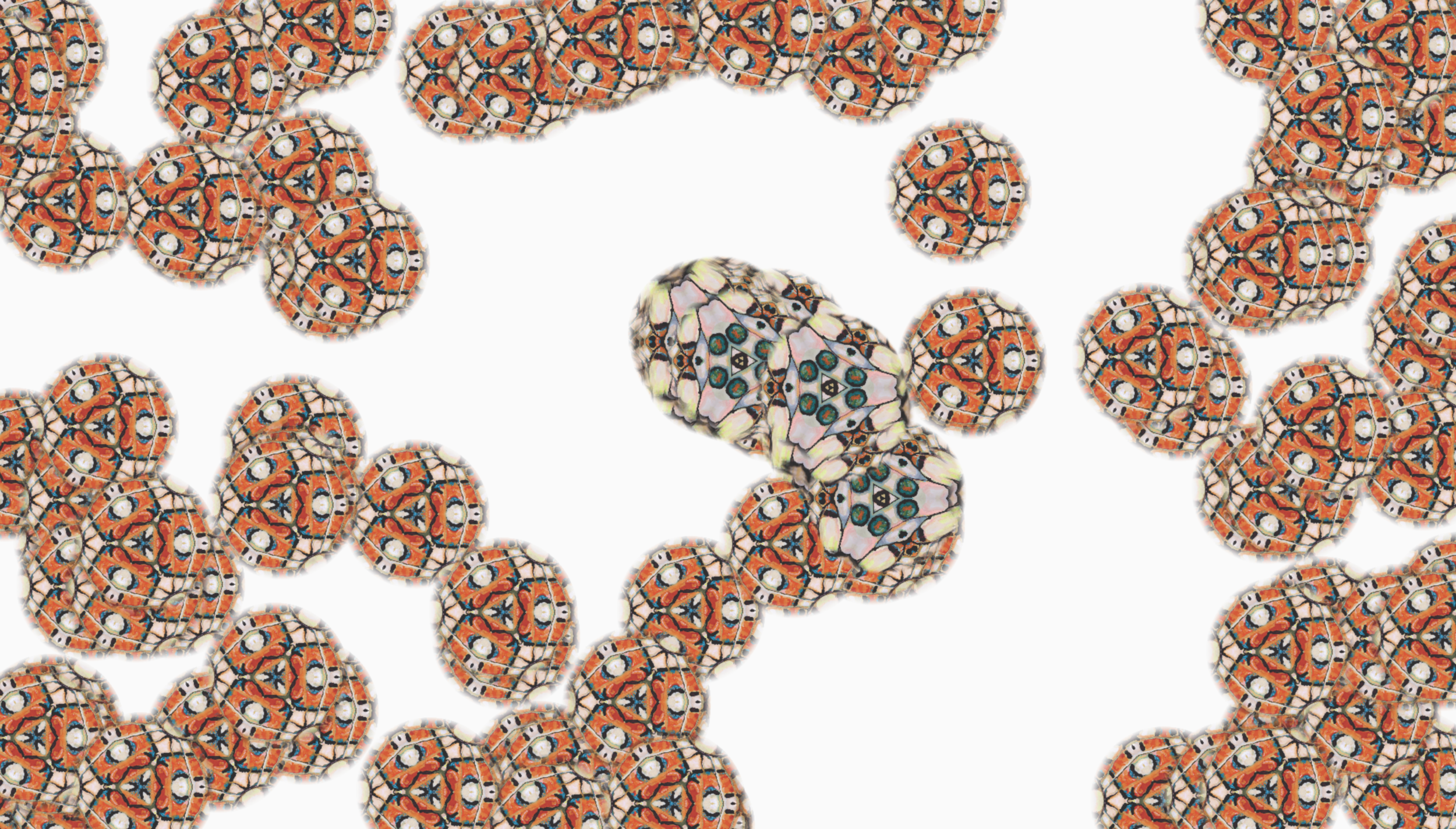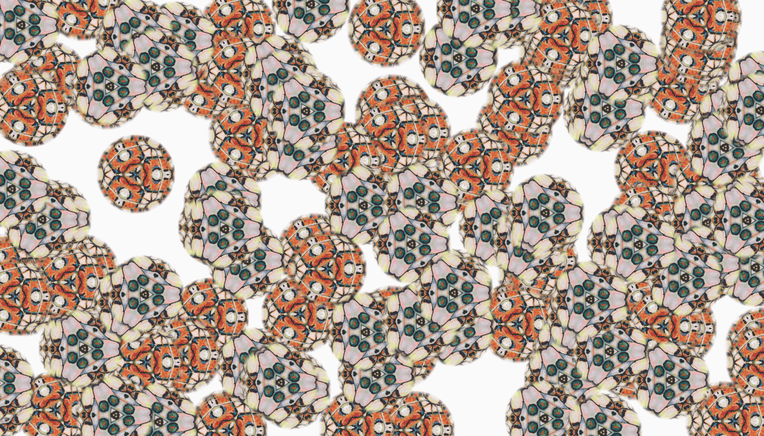 The series begins as a static pattern, and then takes circular sections of the pattern as cells or individuals to interact in dynamic patterns generated with computation. Methods include painting, digital print design, computational sketches.