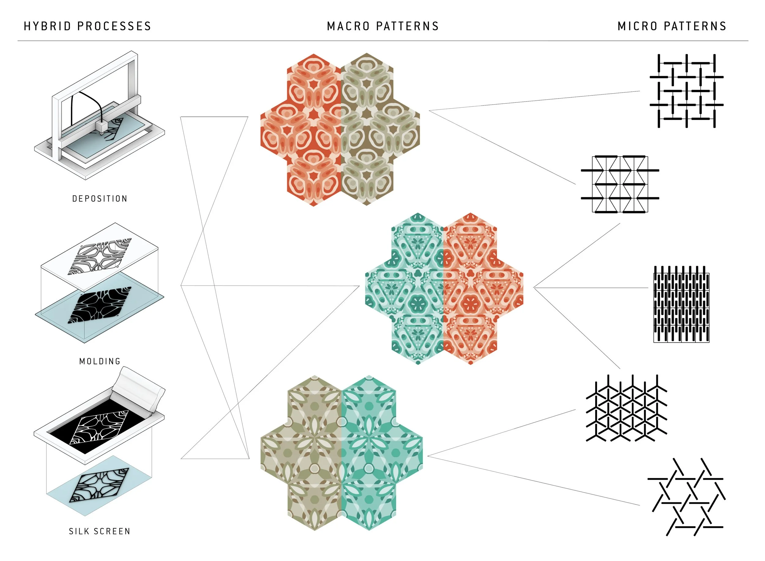 Response Patterns was undertaken with the support of the Center for Craft's Materials-Based Research Grant, 2019, to invent environmentally responsive embellishment methods for textile. The team leveraged interdisciplinary experience—Yuchen Zhang’s knowledge in material science and interactive technology, Travis Fitch’s methodical study of geometry and digital fabrication, and Anette Millington’s expertise in textile art and embellishment. Processes included silk screening with photochromic pigment, and 3D printing. We see this use of new materials and technology as a natural progression in textile craft - which has historically imbued place into both it’s materiality and imagination.